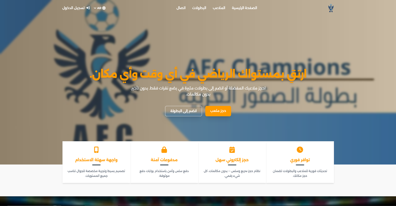 AFC Sport is a modern sports booking platform designed to simplify the process of organizing and reserving sports tournaments and playgrounds.
