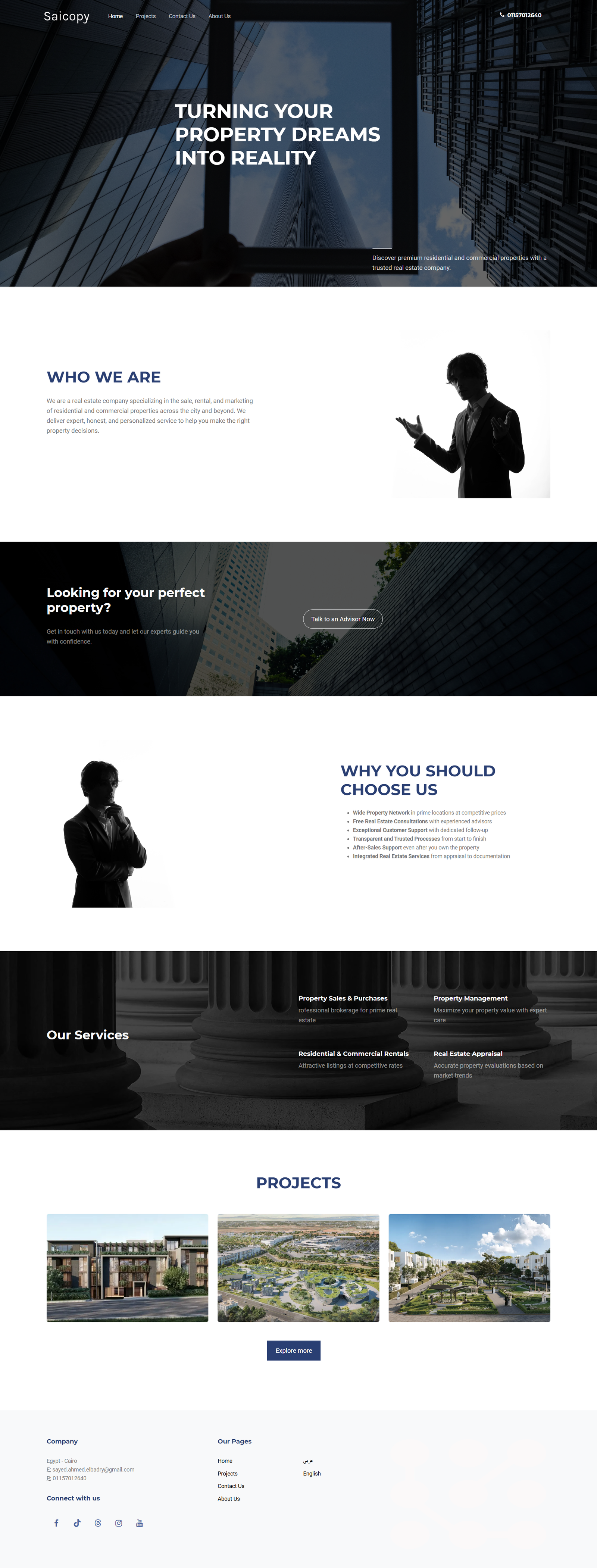A fully responsive and customizable real estate website built with CMS Classic. This demo showcases how real estate agencies can list properties, highlight projects, and manage content easily—all with elegant design and Arabic–English bilingual support.